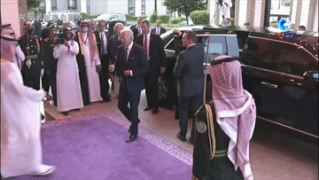 拜登與迎接他的沙特王儲穆罕默德在宮殿門前碰拳致意。這一幕在美國國內引發爭議。有評論人士批評拜登為了現實利益而在外交政策上隨意“變臉”,還有人直指這種表面上刻意展現雙方關系親密的做法很虛偽。