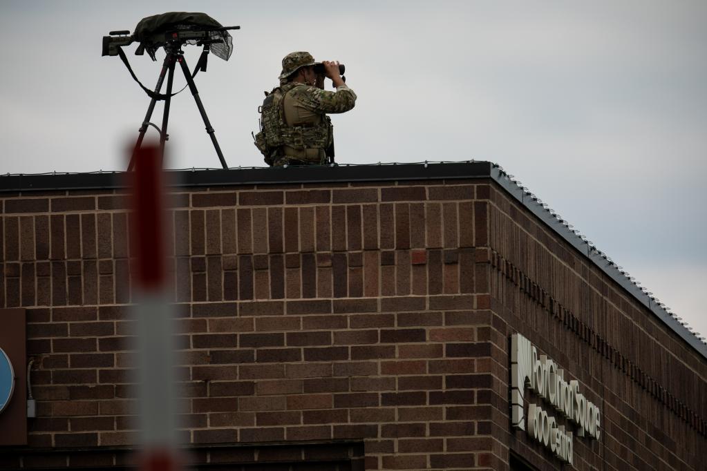 7月4日,一名狙擊手在美國伊利諾伊州海蘭帕克市警戒監視。新華社發(文森特·約翰遜攝)