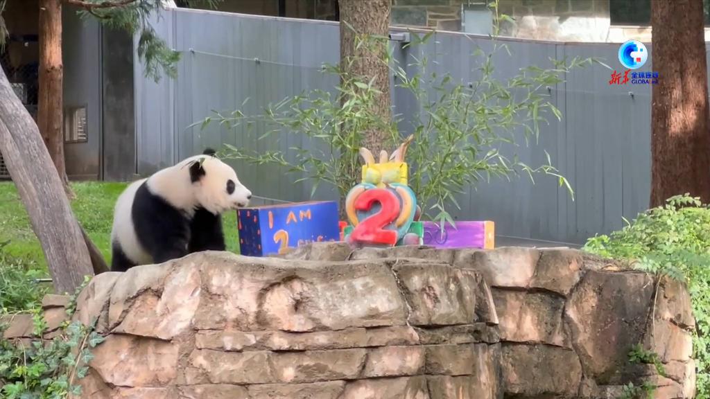 美國首都華盛頓史密森學會國家動物園21日為大熊貓幼崽“小奇跡”慶祝兩歲生日。飼養員們專門為“小奇跡”制作了營養美味的冰凍果蔬蛋糕,蛋糕正面的紅色數字“2”十分醒目,蛋糕周圍點綴著紅薯、蘋果、胡蘿卜、梨、甘蔗、香蕉和竹子。