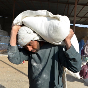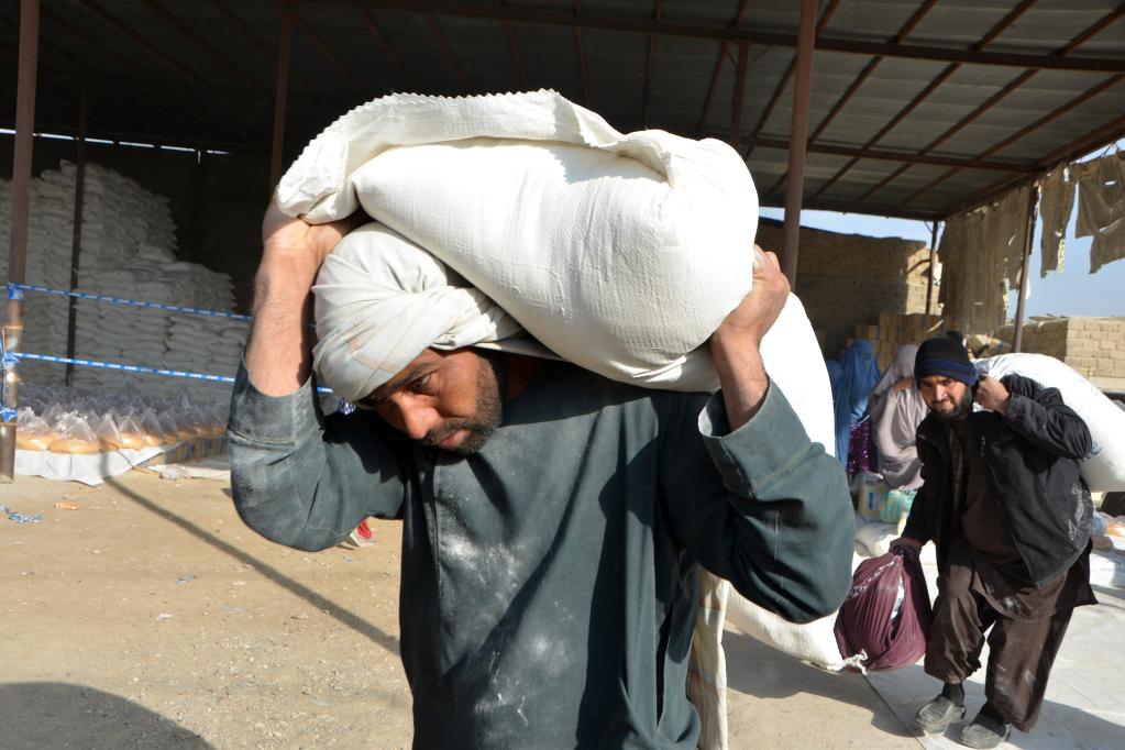 2021年12月20日,人們在阿富汗坎大哈領取世界糧食計劃署提供的援助物資。新華社發(薩瑙拉攝)