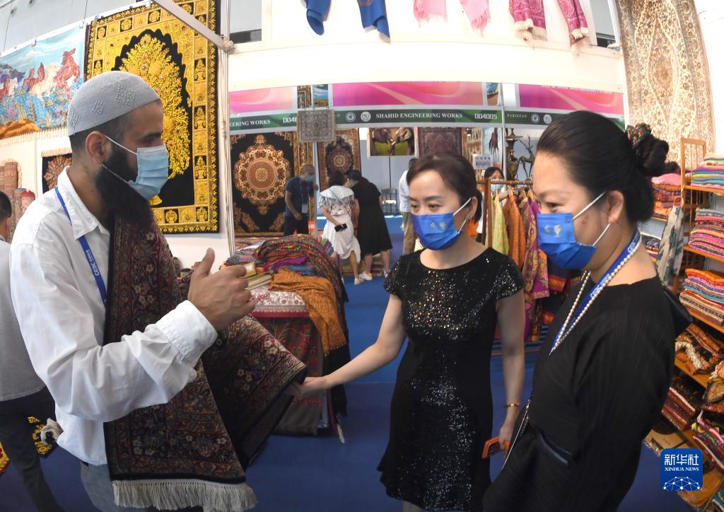 9月19日,觀眾在東博會上挑選巴基斯坦商品。