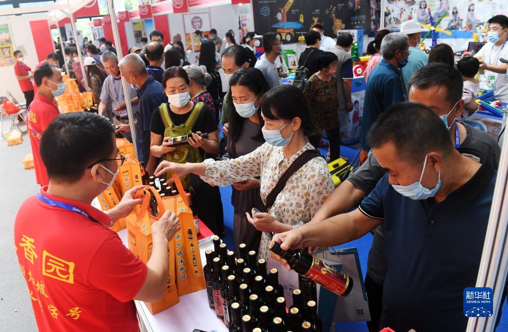 9月19日,在東博會展覽現場,消費者在選購來自新加坡的商品。