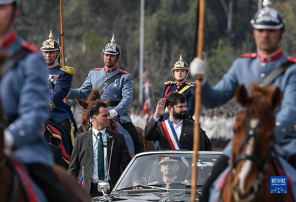 當日,一年一度的智利陸軍節閱兵式在首都圣地亞哥奧伊金斯公園舉行。智利陸??杖姾途觳筷?200多人參加了閱兵式。