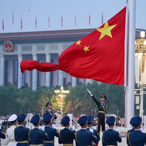 2022年10月1日清晨,隆重的升國旗儀式在北京天安門廣場舉行,慶祝中華人民共和國成立73周年。新華社記者 陳鐘昊 攝