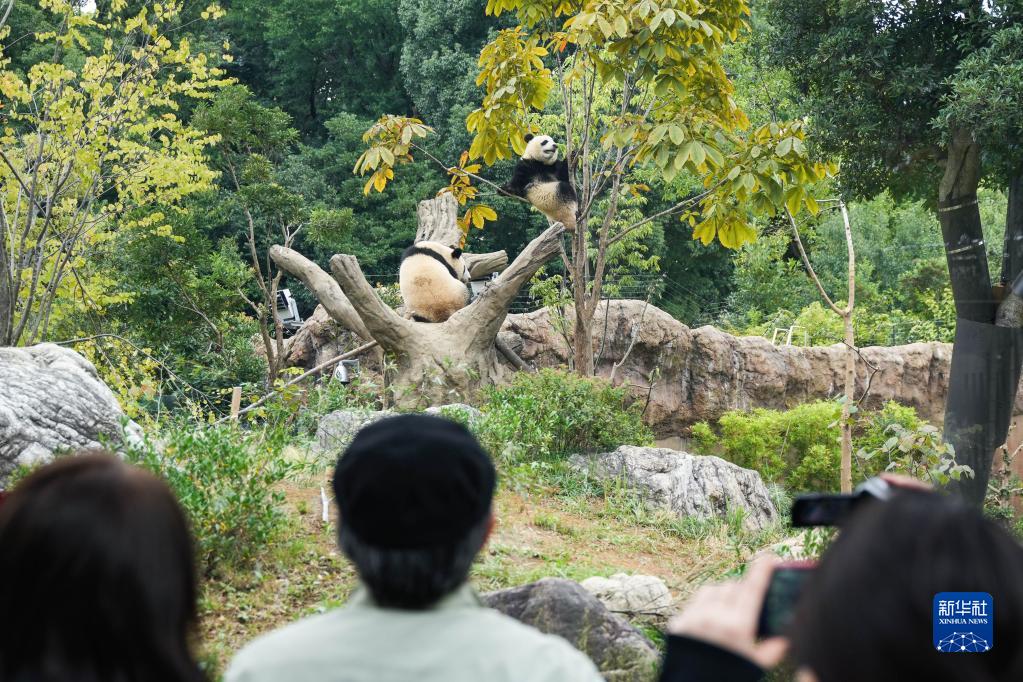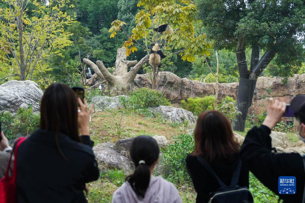 10月28日,游客在日本東京上野動物園觀看大熊貓。新華社記者 張笑宇 攝