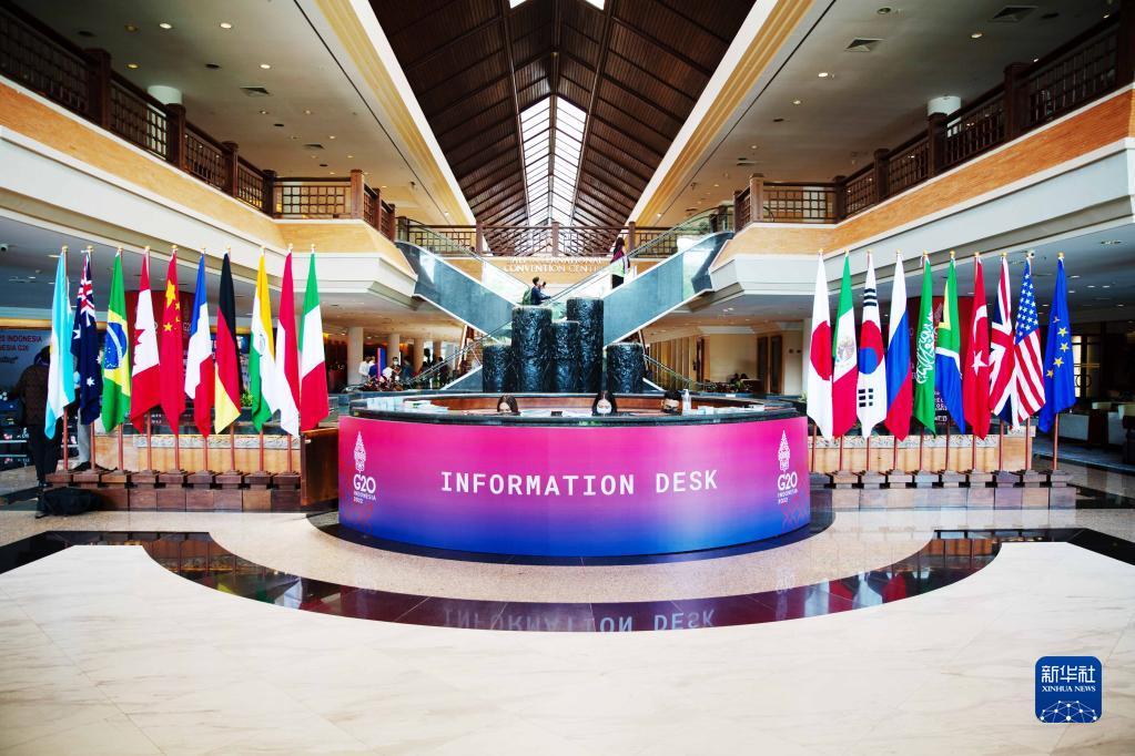這是11月13日在印度尼西亞巴厘島拍攝的峰會媒體中心內景。