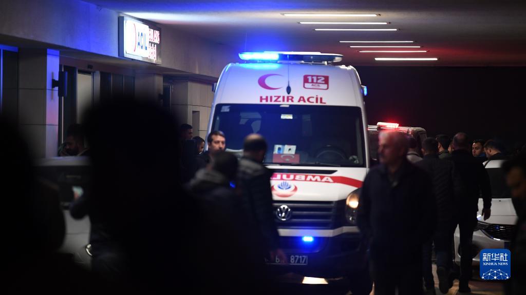 11月13日,一輛救護車停在土耳其伊斯坦布爾市中心塔克西姆廣場附近一家醫院。