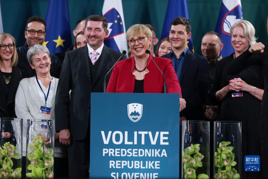 11月13日,在斯洛文尼亞盧布爾雅那,當選總統娜塔莎·皮爾茨·穆薩爾在選舉總部向媒體發表講話。新華社發(澤利科·斯特凡尼奇 攝)