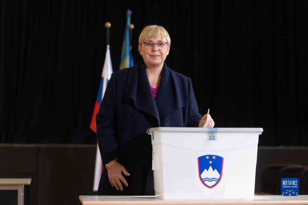 11月13日,娜塔莎·皮爾茨·穆薩爾在斯洛文尼亞一處投票站投票。新華社發(澤利科·斯特凡尼奇 攝)