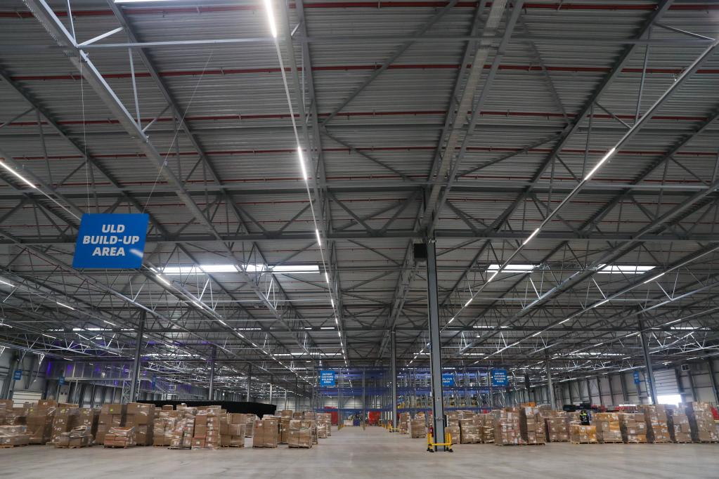 這是2021年11月8日在比利時列日省格拉斯-奧洛涅拍攝的菜鳥列日數字物流中樞。新華社記者鄭煥松攝