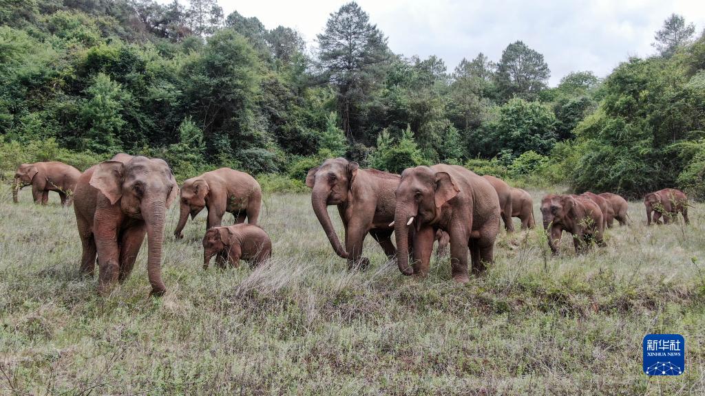 2021年6月3日在昆明市晉寧區雙河彝族鄉拍攝的野象(無人機照片)。新華社發