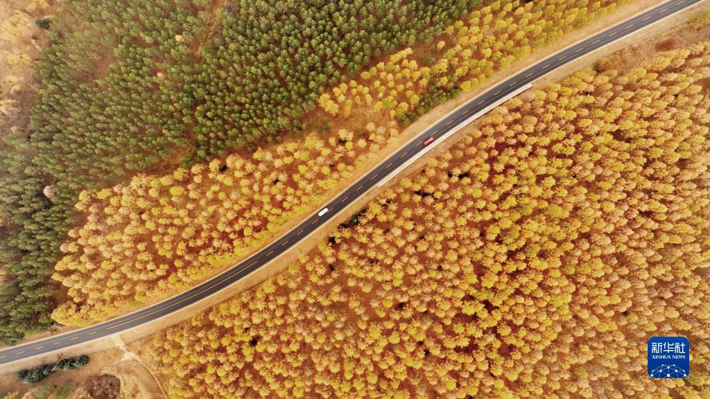 這是2022年10月2日拍攝的河北塞罕壩國家級自然保護區秋景(無人機照片)。新華社發(王龍 攝)