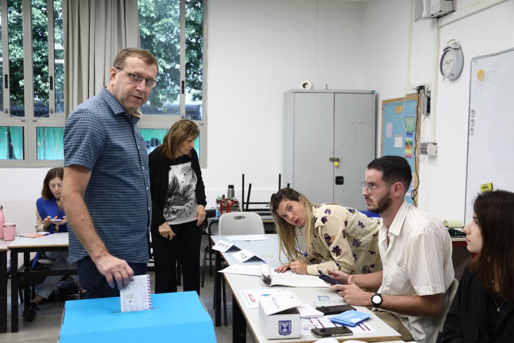 11月1日,人們在特拉維夫一處投票站參與議會選舉投票。新華社發(吉德翁攝/基尼圖片社)