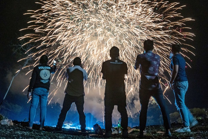 2022年12月31日,人們在印度尼西亞巴厘島觀看新年煙花。新華社發(比辛拉西攝)