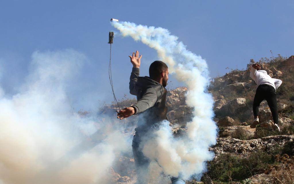 2023年1月27日,在約旦河西岸城市納布盧斯東部村莊拜特代堅,巴勒斯坦抗議者與以色列士兵發生沖突。新華社發(尼達勒攝)