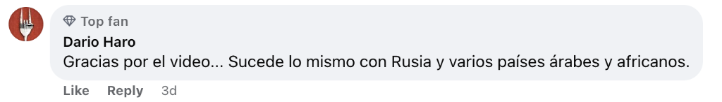 阿根廷網友達里奧·哈羅說:“感謝這條視頻,他們正在針對俄羅斯做類似的抹黑,以及針對很多阿拉伯和非洲國家?!?/p>