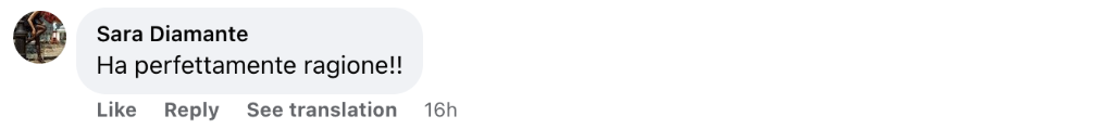 意大利網友薩拉·迪婭曼特留言說:“說的絕對正確!”