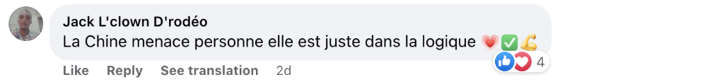 網友杰克·羅德奧用法語留言說:“中國一心發展,不對任何人構成威脅?!?/p>
