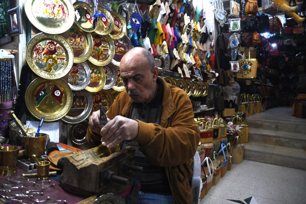 1月9日,一名工匠在突尼斯首都突尼斯市老城制作傳統手工藝品。新華社發(阿代爾攝)