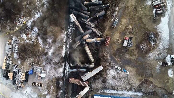 出事列車由美國諾??四戏借F路公司運營,3日晚行至俄亥俄州東部鄰近賓夕法尼亞州時脫軌,其中10節車廂裝載有毒化學品,包括易燃且致癌氣體氯乙烯。應急人員6日下午對這些氯乙烯進行“受控釋放”和燃燒,理由是防止大規模爆炸發生。