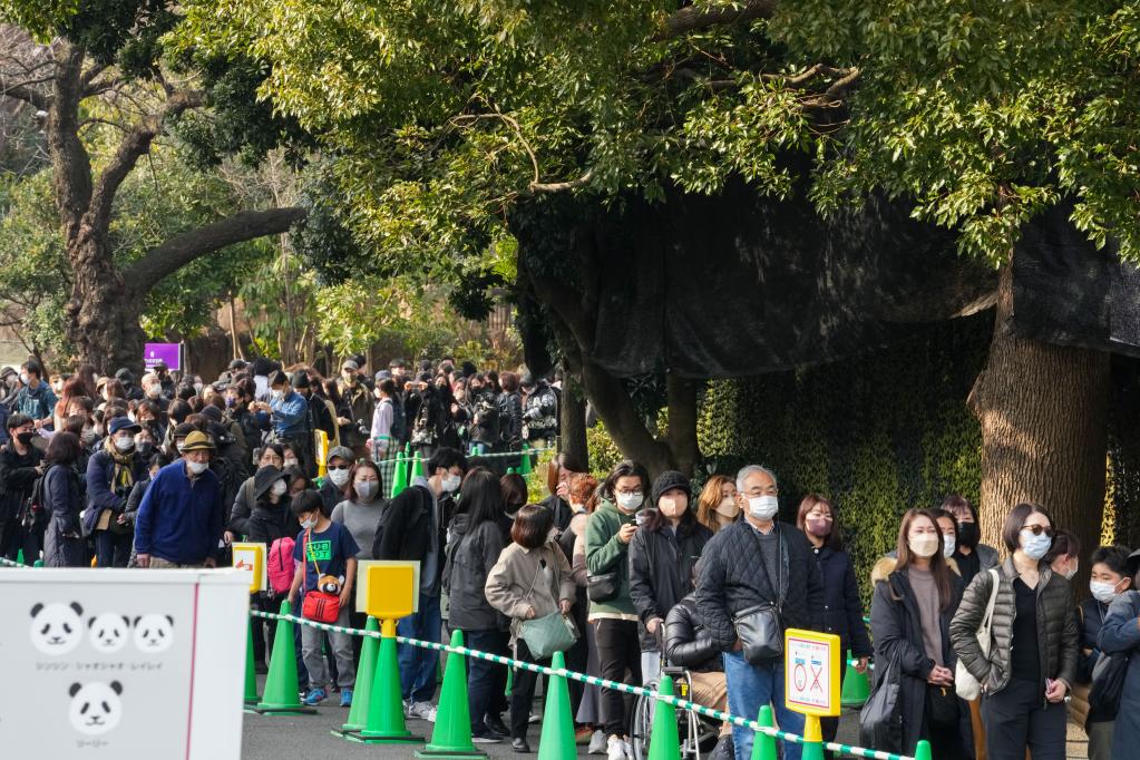 2月19日,在日本東京上野動物園,游客排隊等待與大熊貓“香香”告別。新華社記者張笑宇攝