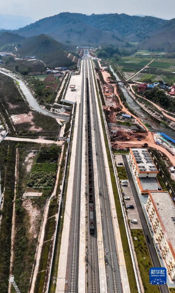 2月22日拍攝的中老鐵路磨憨站(無人機照片)。