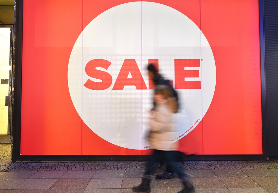 2022年12月30日,人們經過德國首都柏林的一家打折店鋪。(新華社記者任鵬飛 攝)