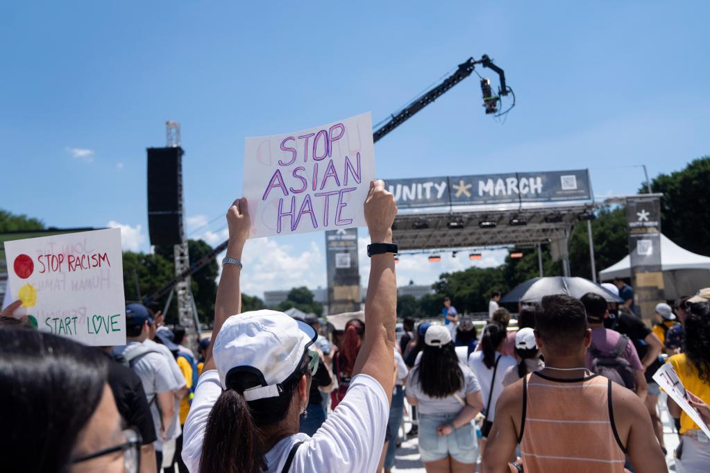2022年6月25日,美國亞裔人士在首都華盛頓的國家廣場舉行集會,呼吁停止針對亞裔的仇恨及暴力犯罪行為。新華社記者劉杰攝
