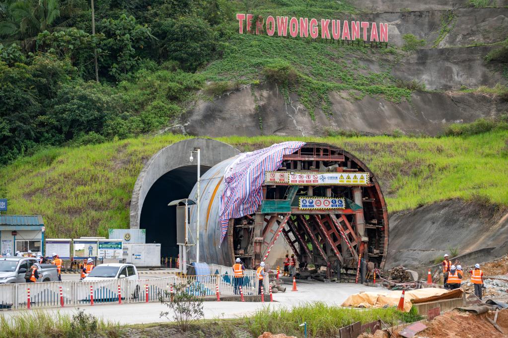 這是3月6日在馬來西亞彭亨州拍攝的馬來西亞東海岸鐵路(馬東鐵)關丹隧道施工現場。新華社發(張紋綜攝)