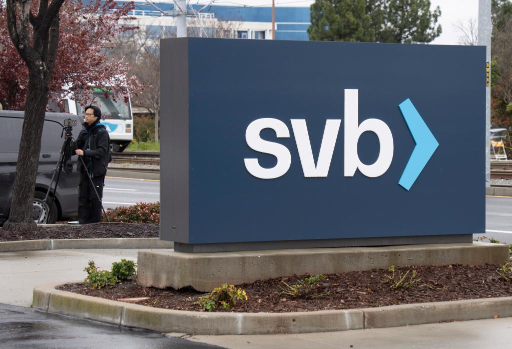 這是3月10日在美國加利福尼亞州圣克拉拉市硅谷銀行總部外拍攝的銀行標識。新華社發(李建國攝)