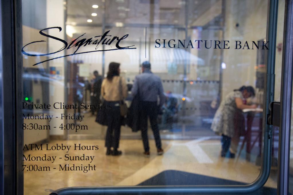 3月13日,客戶在美國紐約市簽名銀行網點內等待辦理業務。新華社發(郭克攝)