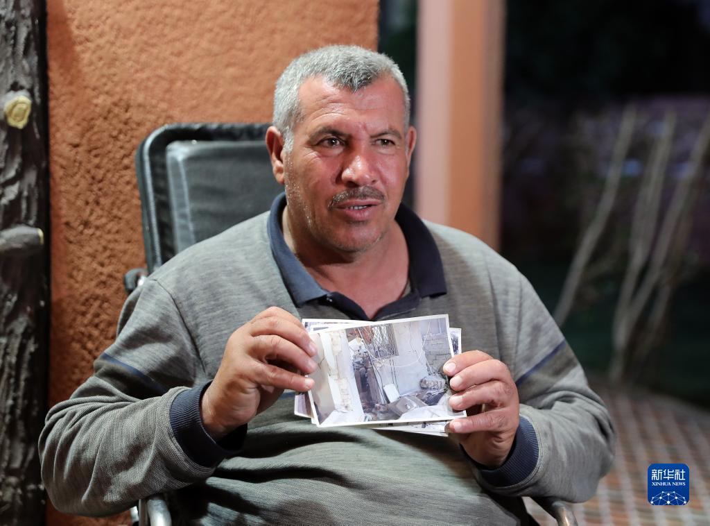 3月6日,在伊拉克北部薩拉赫丁省祖盧耶鎮,阿卜杜拉·馬哈茂德·易卜拉欣展示自己家被美軍炸毀后的照片。新華社記者 王東震 攝