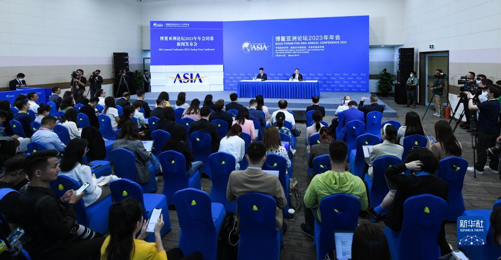 3月31日拍攝的博鰲亞洲論壇2023年年會閉幕新聞發布會現場。新華社記者 楊冠宇 攝