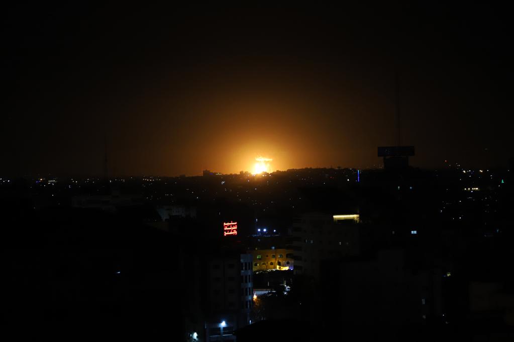 這是4月7日凌晨在加沙地帶拍攝的以軍空襲產生的火光。新華社發(里澤克·阿卜杜勒賈瓦德攝)
