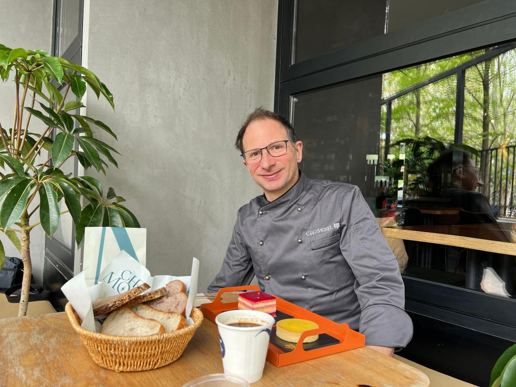 “老夢面包”創始人莫雷爾坐在面包店外的露天座位上。新華社記者崔可欣攝