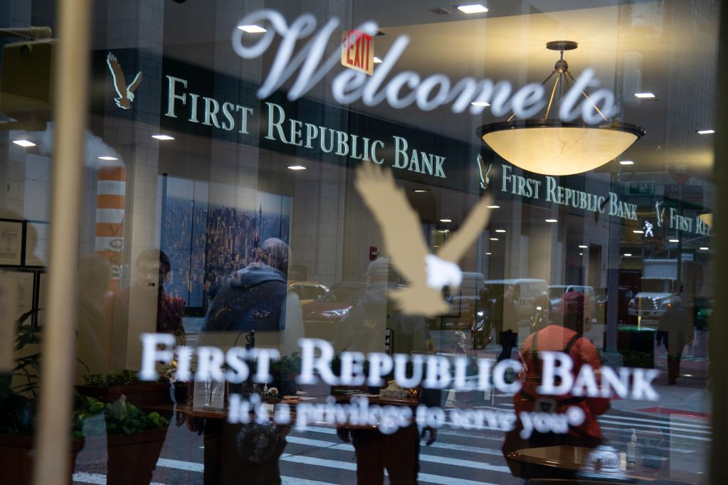 這是5月1日在美國紐約拍攝的一家第一共和銀行。(新華社發,郭克攝)