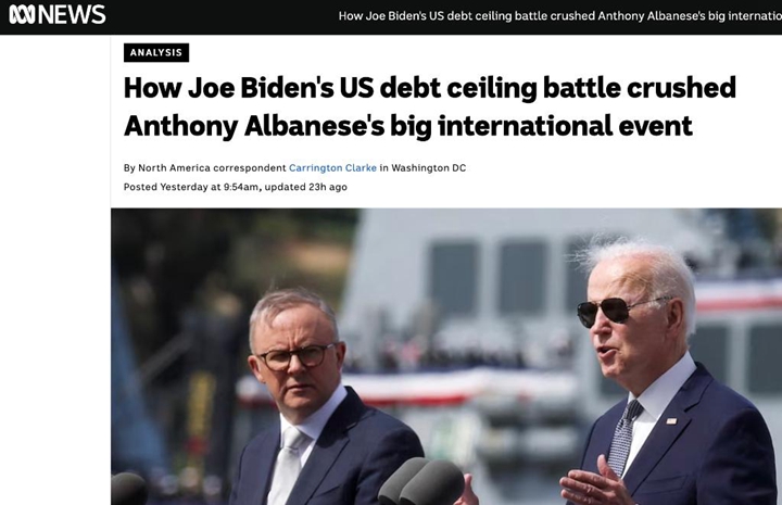 澳大利亞廣播公司的一篇報道標題更直白——《拜登的債務上限之戰如何搞砸阿爾巴尼斯的國際大事》。