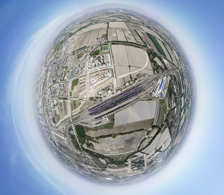 新疆霍爾果斯鐵路口岸駝峰場(無人機全景照片)。新華社記者 郝昭 攝