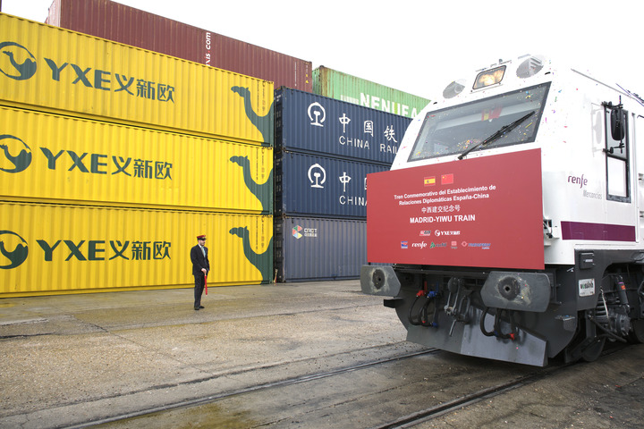 西班牙首都馬德里是“義新歐”中歐班列的目的地之一。經過在霍爾果斯中轉,日用百貨、電器等中國商品由浙江義烏始發而來,西班牙紅酒、橄欖油等沿線國家產品熱銷中國。