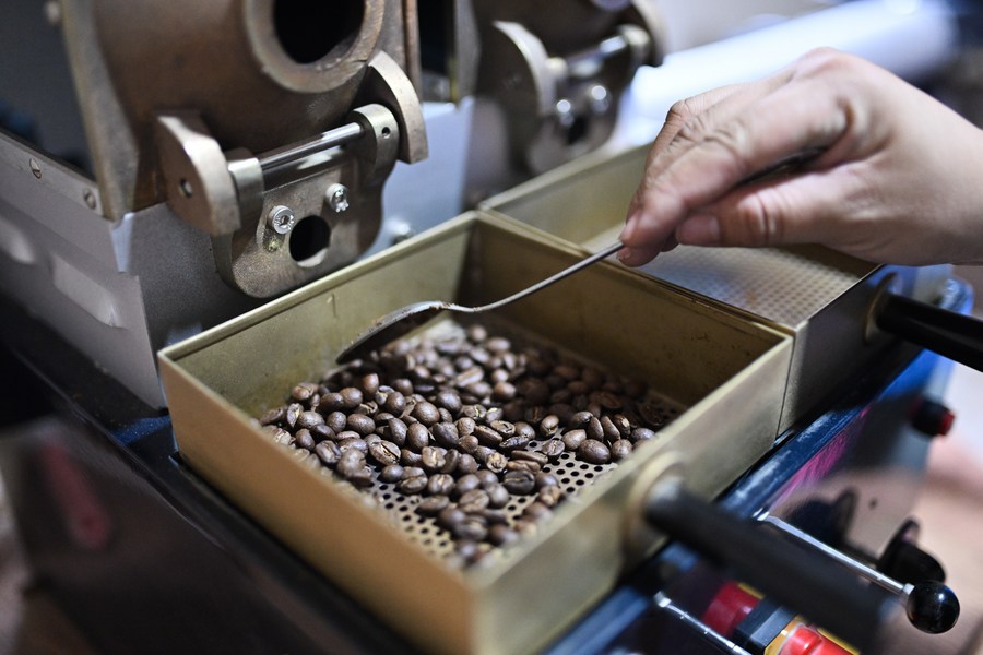 5月6日,在洪都拉斯馬爾卡拉的一家咖啡工廠,工人查看經過烘焙的咖啡豆。洪都拉斯的自然條件非常適合咖啡種植,是中美洲主要咖啡出口國之一。新華社記者辛悅衛攝