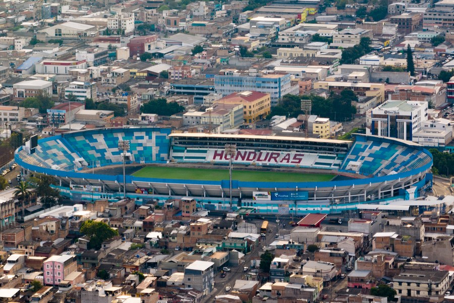 這是3月26日在洪都拉斯首都特古西加爾巴拍攝的國家體育場(無人機照片)。新華社記者辛悅衛攝