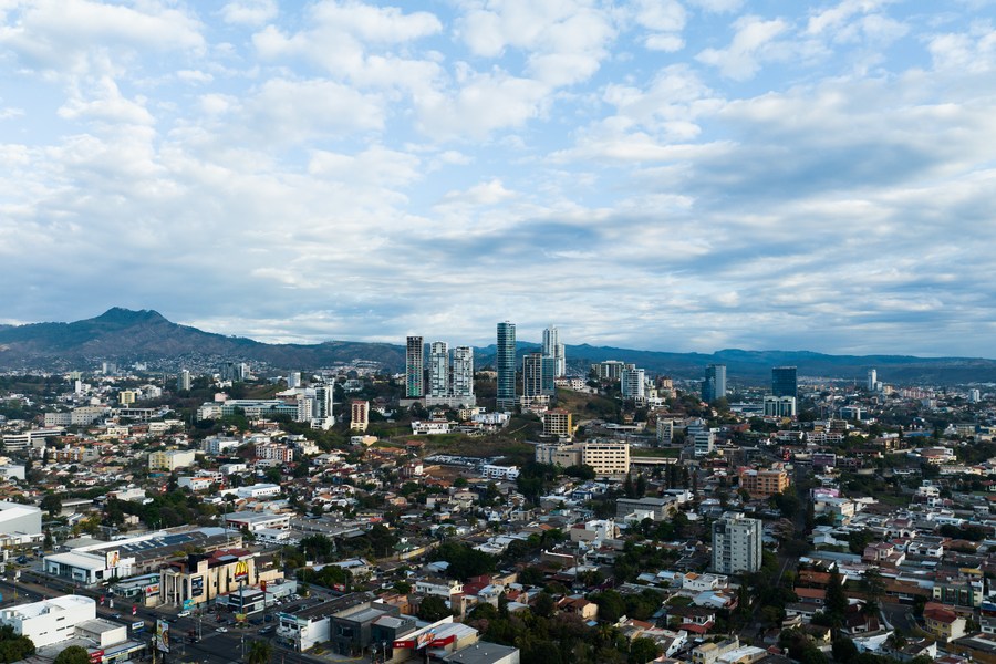 這是3月26日拍攝的洪都拉斯首都特古西加爾巴城市風貌(無人機照片)。新華社記者辛悅衛攝