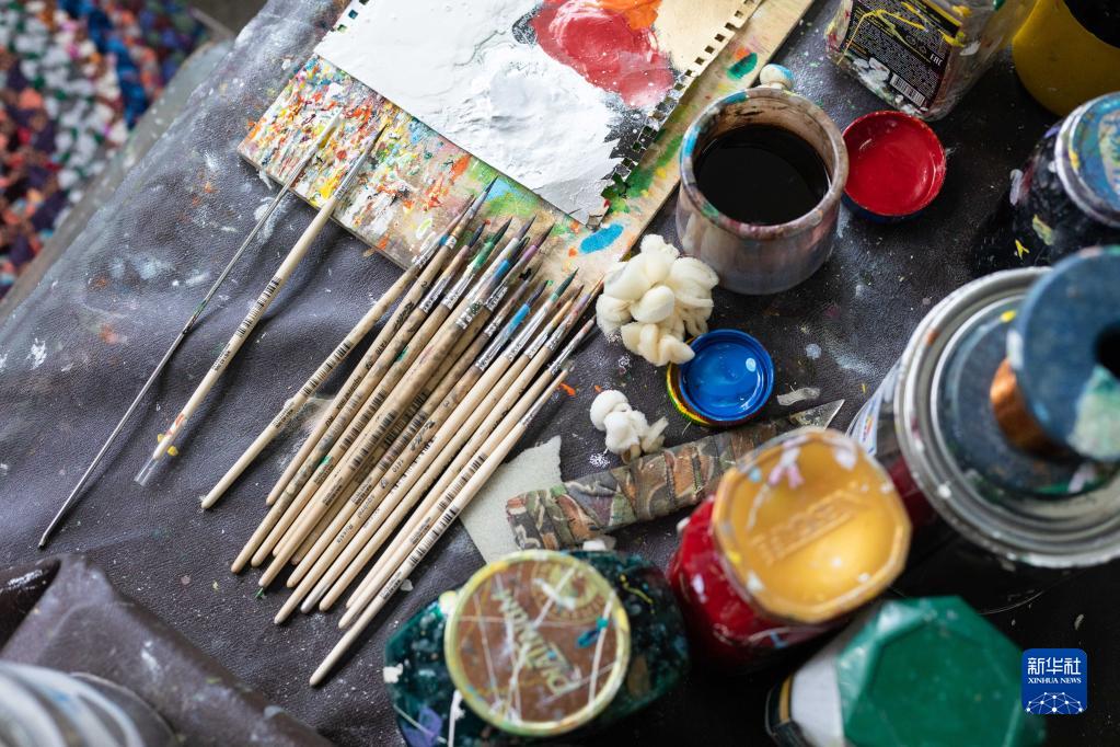 這是6月7日在俄羅斯圖拉拍攝的用于繪制巴揚手風琴琴身圖案的工具。