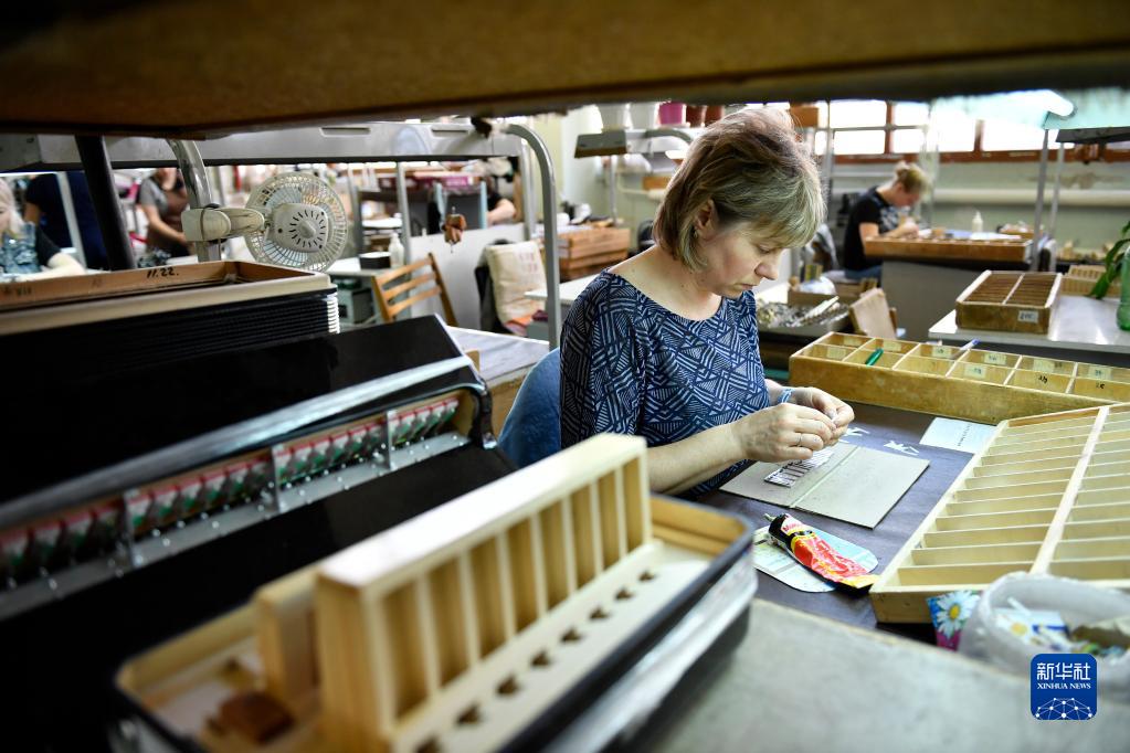 6月7日,工作人員在俄羅斯圖拉組裝巴揚手風琴部件。