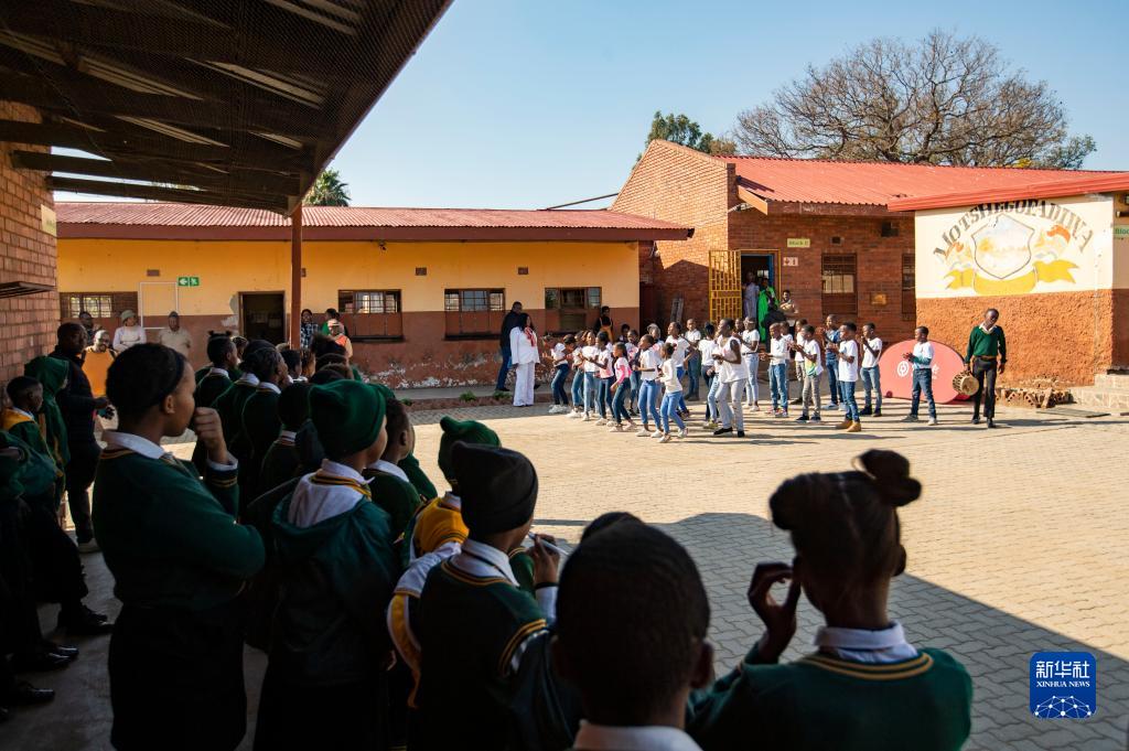 6月8日,在南非豪滕省,莫策戈法迪瓦小學的學生在校園內活動。