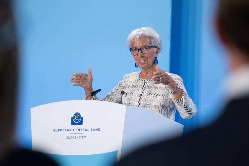 6月15日,歐洲中央銀行行長拉加德在德國法蘭克福歐洲央行總部舉行的新聞發布會上講話。(新華社發,歐洲央行供圖)