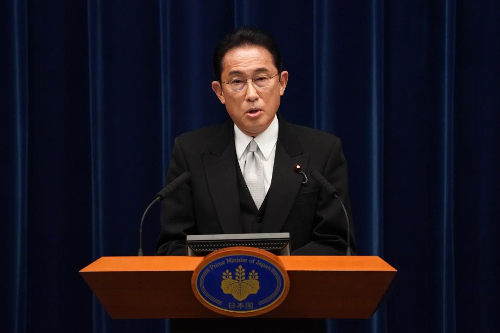 2021年10月4日,日本首相岸田文雄在日本東京首相官邸召開記者會。新華社發(Pool圖片/花井亨攝)