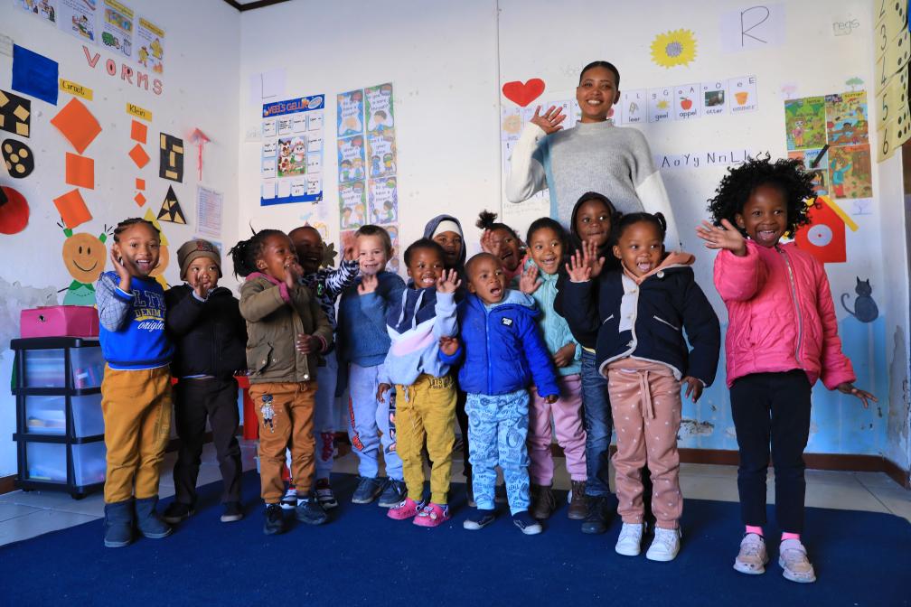 8月11日,老師與孩子們在南非德阿鎮的一家兒童早教中心合影。這家早教中心由中國龍源南非公司出資成立運營。(新華社記者董江輝攝)