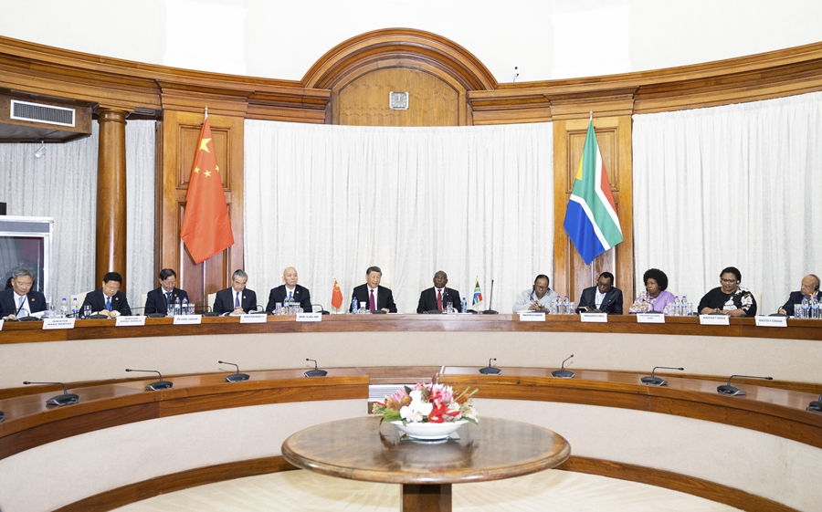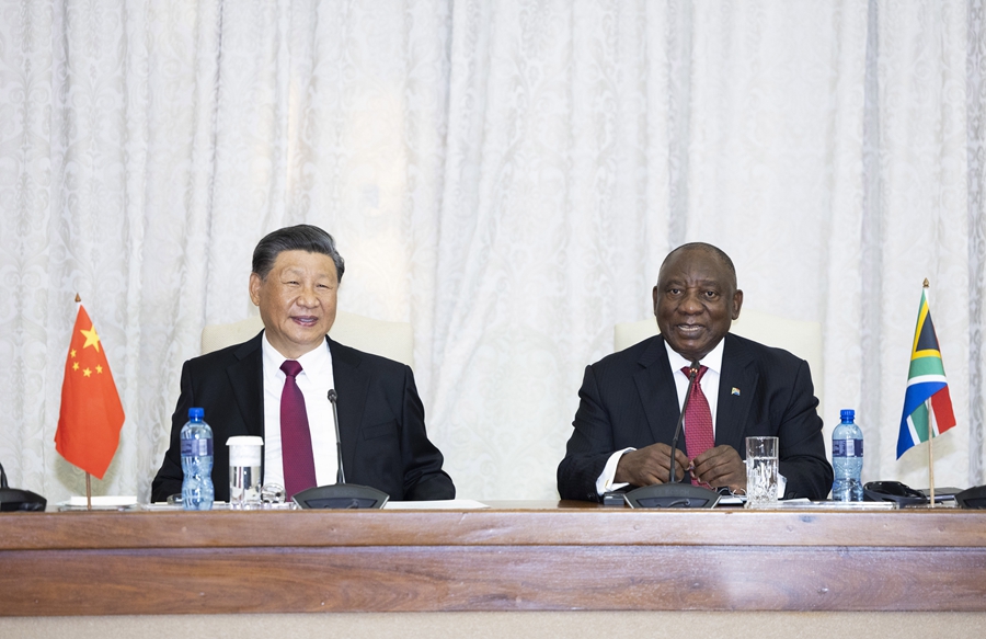 在同拉馬福薩總統的會談中,習近平主席指出,近年來,金磚國家秉持開放包容、合作共贏的金磚精神,書寫了不同制度、不同文化、不同地域國家攜手發展的精彩故事,成為南南合作的一面金字招牌。