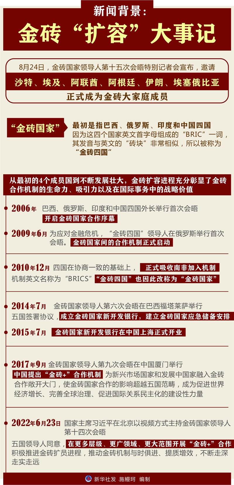 新華社北京8月24日電? 新聞背景:金磚“擴容”大事記